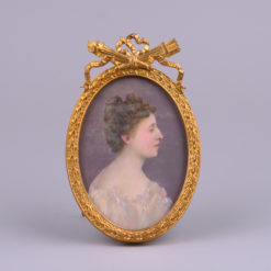 Een handgeschilderde miniatuur gemonteerd in een verguld messing lijstje, Frankrijk circa 1900.